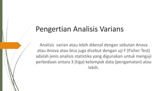 Analisis Varian 1 Analisis Anvarian Analisis Varians Analysis Of Variance Anova Adalah Suatu Metode Analisis Statistika Yang Termasuk Ke Dalam Ppt Download